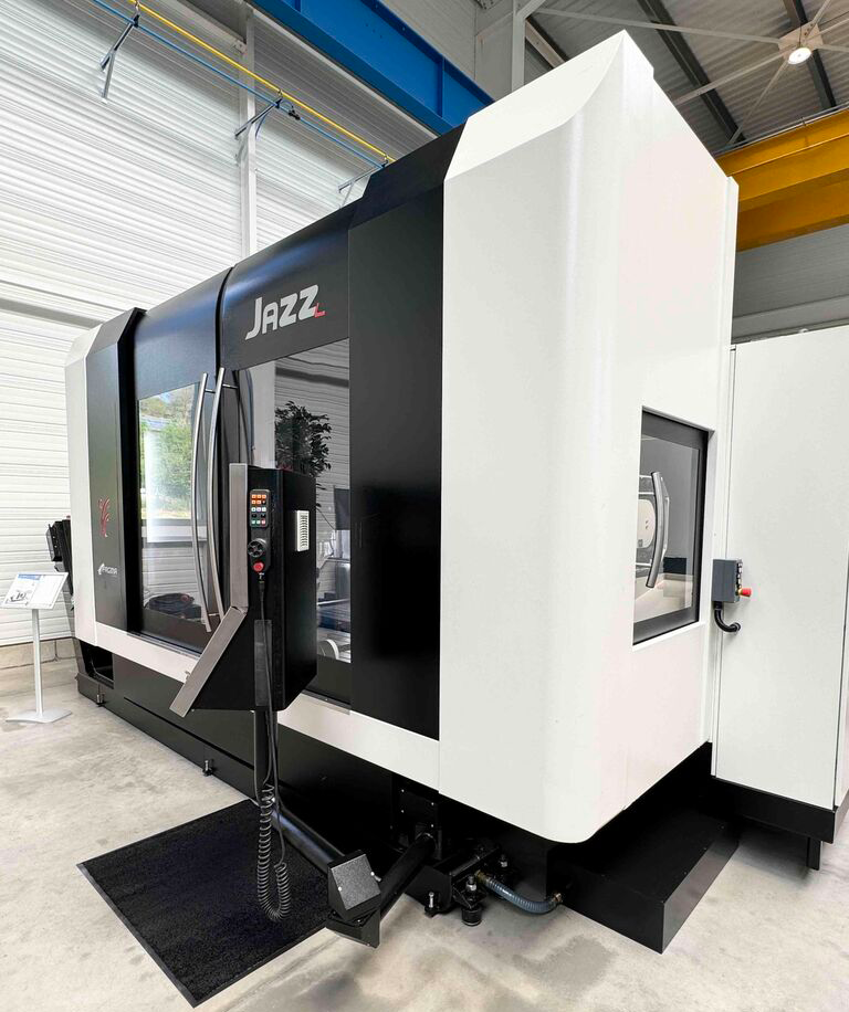 JAZZ 5AX系列通用型5轴加工中心专为高动态复杂工序设计,包含JAZZ R、JAZZ M和JAZZ L三种型号。其基架采用专为铣床研发的DMP工艺制造(注:DMP为新型矿物质铸件技术,目前广泛应用于欧洲高端机床制造),这种复合材料铸件兼具卓越的阻尼减振特性和优异的结构性能。机床底座配置双模式工作台系统:固定式工作台与摇篮式旋转工作台(C+B轴组合)。通过线性导轨与滚珠丝杠构成的精密传动系统,承载立柱的滑鞍可实现X/Y轴平稳运动;Z轴滑枕支架搭载可选配电主轴,同样采用滚珠丝杠驱动结构。创新性地取消平衡缸设计,显著提升机床高速运动时的动态响应能力。安全方面,Z轴滚珠丝杆顶端配备安全制动装置,立柱侧置刀库布局合理,工作区整体采用不锈钢内防护罩实现全面保护。